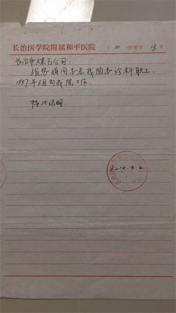本人护理专科学校毕业之后的1997年6月,被和平医院招聘为护士,直至工作到2010年,工龄为整整13年。十三年来,4700多个日日夜夜,本人风雨、寒暑无阻地在护理岗位上,吃苦耐劳,兢兢业 业,一丝不苟,从未出现过任何工作上的失误。十三年期间,本人为了提高自己的业务专业能力,业余时间自学取得护理本科学位。本人把人生最美好的青春年华奉献给了和平医院。由于这十三年期间,长治医学院 和平医院的大权,正是由已在反腐浪潮中落马的王庸晋、魏武夫妇把控,一手遮天。送礼、行贿、红包在长治地区已形成众所周知的潜规则“硬性规定”,逢“事”必送礼,逢“事”必须“钱”开路,由于本人生性 耿直,不会溜须拍马屁,同时,也没有那么大经济能力给他们送礼。因此,本人在和平医院十三年期间始终受到同工不同酬的歧视。劳动报酬的工资从最初的每月350元,最终逐渐才调整到600元,每月工资与同行、 同岗位相差1000多元,近年来甚至相差3000多元。法律硬性规定的用人单位必须无条件为劳动者缴纳“五险一金”的社会保险,十三年来作为用人单位的和平医院,分文没有给本人缴纳过。法定的公休日、婚假、产 假待遇及每年年底的福利没有或是减半。每年的职称评定、职称考试更是将我拒之门外。十三年后的2010年,本人再也无法忍耐和平医院王庸晋、魏武之流的歧视、压迫、虐待,才到长治煤气公司职工医院应聘,被 该医院录用后,本人到和平医院人事部门依法调取十三年工作的相关手续、档案,均遭到蛮横无理的拒绝。因此,在此被迫无奈的情况下,只好拿起法律的武器,依法到长治市人社局仲裁委申请仲裁。当时该委一位 有良知办案人员就提醒本人道:“你这个案子在长治你估计打不赢,出了省试试吧!”最终,该仲裁结果是驳回了本人的申请仲裁请求。当时本人申请仲裁的被告主体是和平医院法人代表魏武(女霸天)。当“女霸 天”魏武获知本人将其告到了仲裁委后,更加恼羞成怒,认为本人挑战了她在长治地区“女霸天”的权威,串通当时主管煤气化职工总医院(三元集团公司的董事长)的领导,也是在反腐浪潮中落马的方志有,在未 出具任何合法手续,也没有任何正当理由的情况下,将本人叫至办公室训斥一通后口头通知本人回家待岗,停交保险停发工资至今。王庸晋、魏武、方志有这三位闻名全国的腐败分子,沆瀣一气不仅剥夺了本人的劳 动权利,更为严重的是断了本人养家糊口、生存的活路啊!